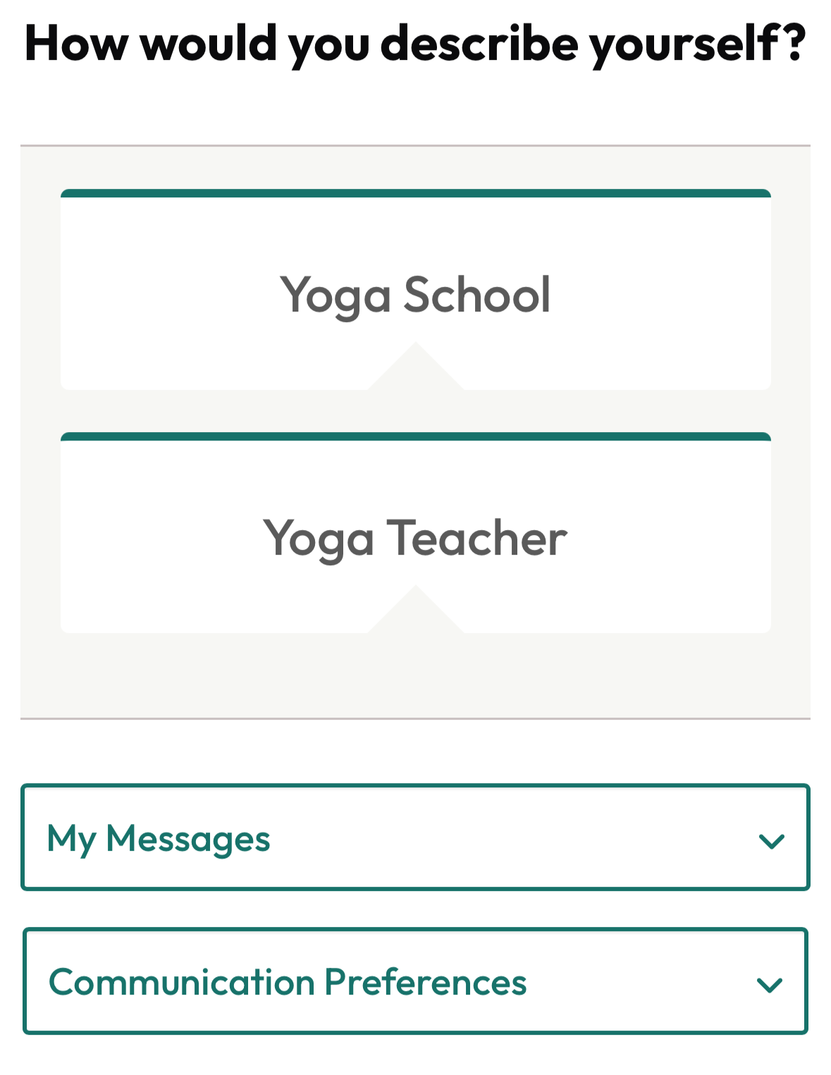 Questa scelta è importante perché ti permette di accedere alla procedura per registrarti come insegnante (RYT).